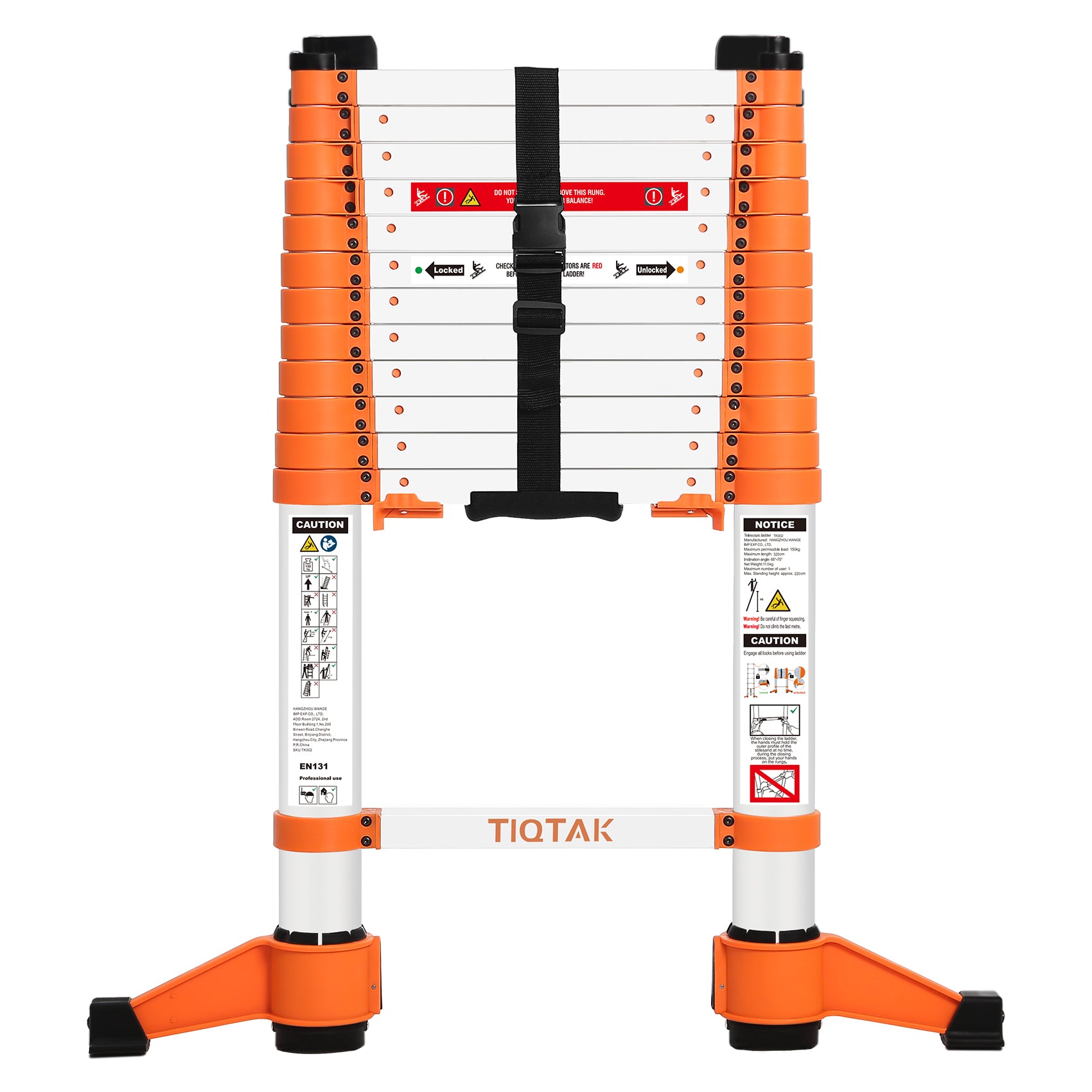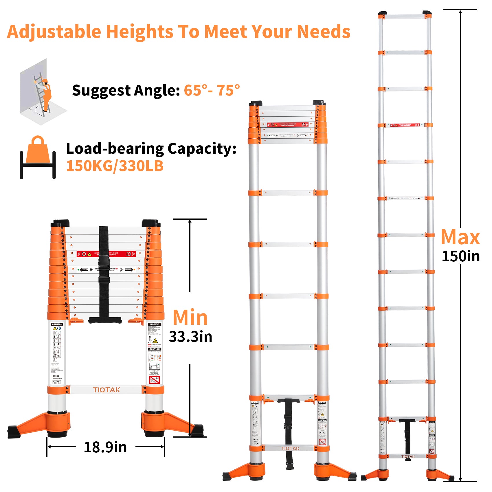 TIQTAK Telescoping Ladder 12.5 FT Aluminum Extension Collapsible Ladder with One-Button Retraction Multi-Purpose Extendable Ladder Portable for Household or RV Work